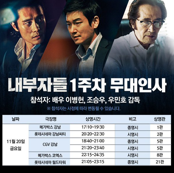 내부자들 무대인사 출처: https://www.facebook.com/Showbox.Movie/?sk=app_272776856121319